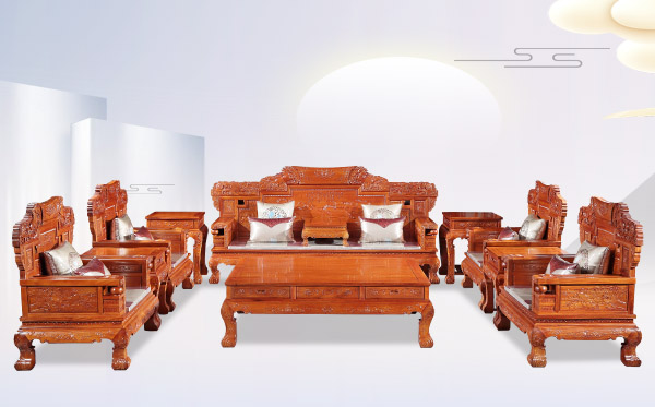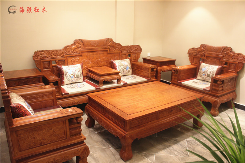 此實拍的寶馬沙發紅木家具圖片為7件套的,適合小戶家庭客廳擺放。