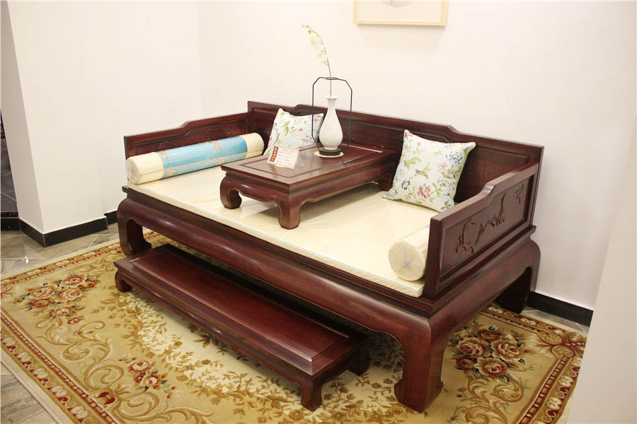羅漢床是古老的家具,屬于臥具之一。彌勒榻一般體形較大,又有無束腰和有束腰兩種類型。有束腰且牙條中部較寬,曲線弧度較大的,俗稱“羅漢肚皮”,故又稱“羅漢床”。