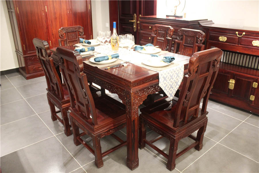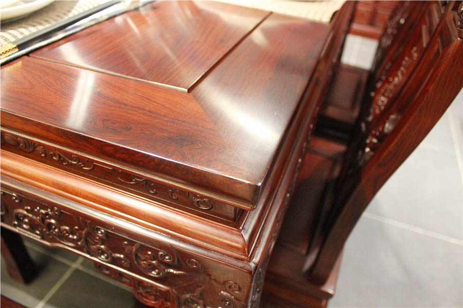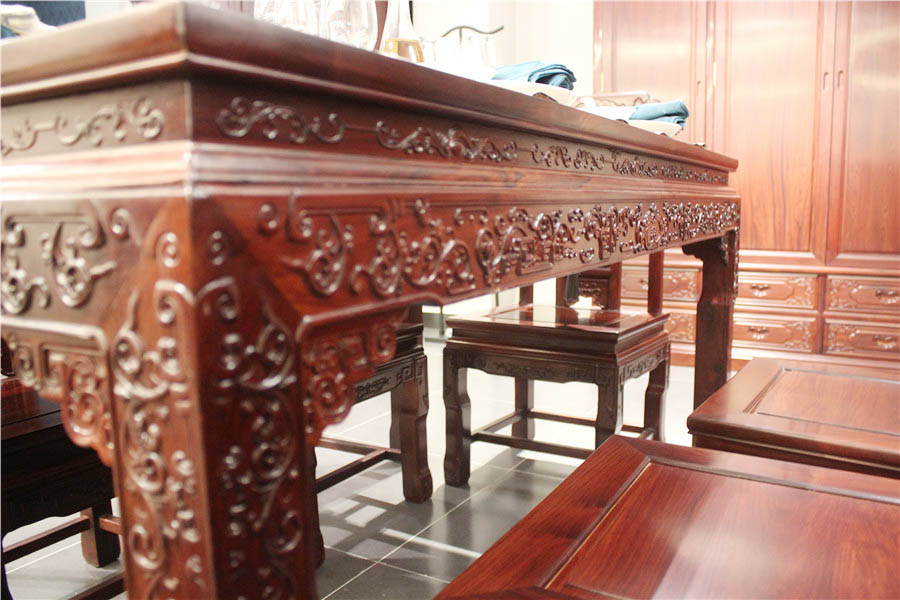 桌邊的雕花大氣優(yōu)雅,每個(gè)花紋都是精雕細(xì)琢,機(jī)器結(jié)合手工,傳統(tǒng)結(jié)合現(xiàn)代,完美融合。