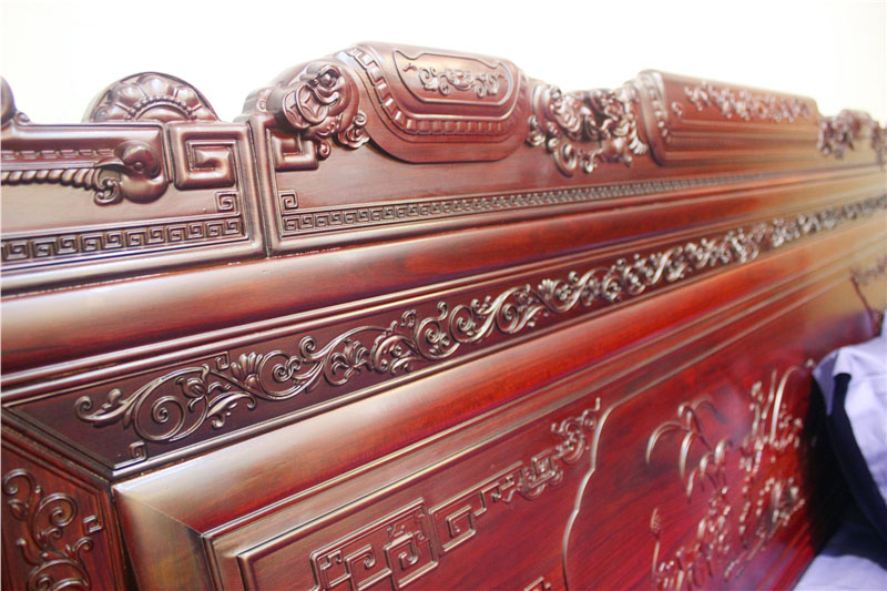 寬大的床屏,細致入微的雕刻工藝將花草描繪的惟妙惟肖,凹凸有致,極具文化氣息。