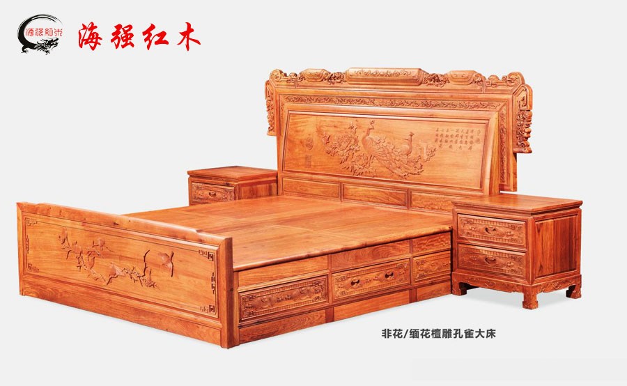 檀雕孔雀大床